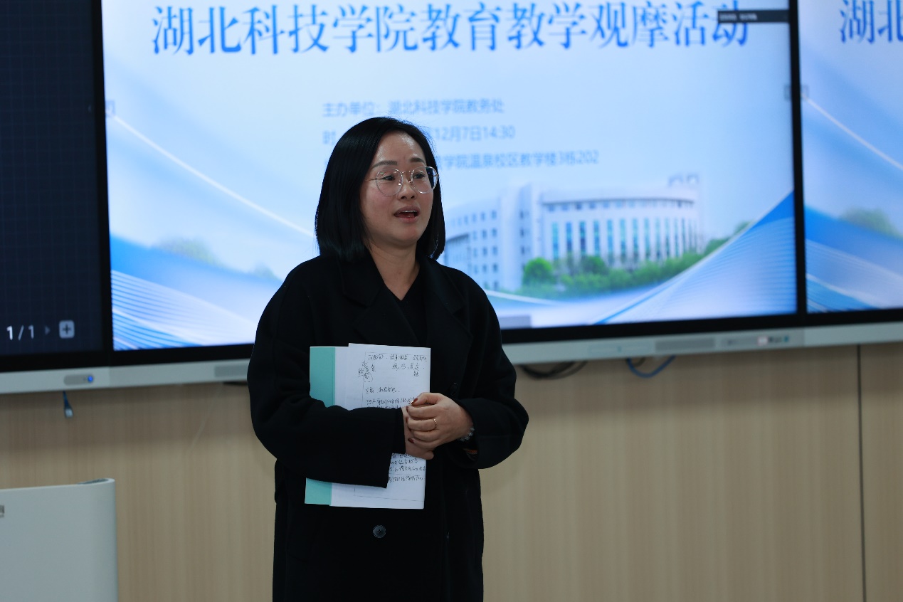 活动采取示范授课、交流互动与专家点评相结合的方式进行。药学院闵清教授、计科学院李歆副教授、外语学院卫丽副教授应邀进行教学示范。闵清教授是湖北省教学名师、湖北省“名师工作室”主持人,本次示范课程内容是《M受体阻断药——阿托品》。整堂课 “稳、巧、厚、融、育”,教学内容深入浅出,课堂讲授充满激情,课程思政润物无声。李歆副教授擅长线上线下混合式教学,曾两次获得学校教学创新设计大赛一等奖。本次示范课程内容是《人工智能——机器学习》。课堂讲授灵活运用知识图谱,突出教学新理念,并且深入挖掘人工智能作品中的中国元素,视听结合,富有感染力。卫丽副教授曾代表学校首次入围湖北省高校教师教学创新大赛并获三等奖,本次示范课程内容是《英语阅读——TheoldmanandtheseaChapter 5 Battle with the sharks》。课程教学设计脉络清晰,层层递进,采用全英授课,注重课程思政融入,课堂氛围轻松愉快,学生积极参与互动。