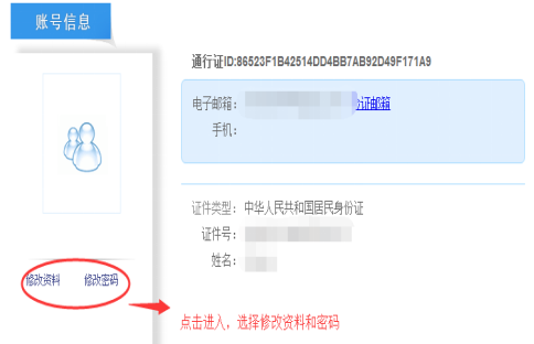 注册完成后,用上述注册的账号登录平台(地址:http://passport.etest.net.cn),修改个人资料及密码。