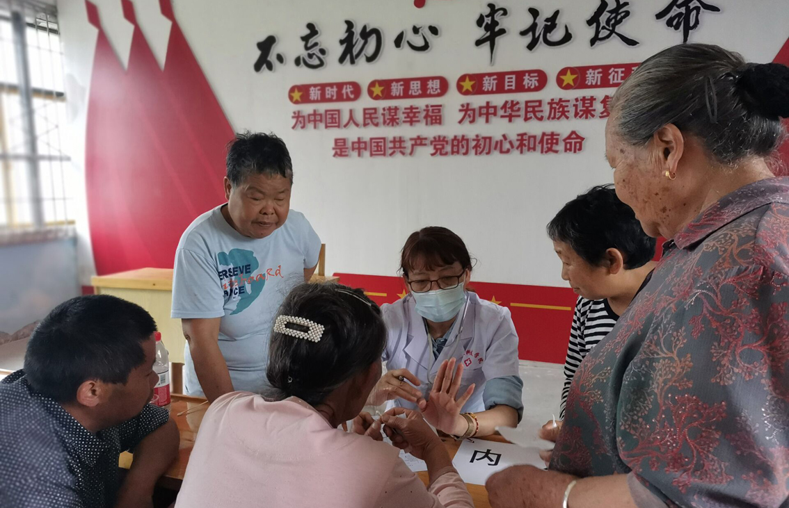 随后,农工党的医护党员干部们为当地村民进行义诊。不少群众慕名前来咨询,有的还携带病历、X片等资料来。“婆婆,量血压在那边,心血管内科在那边。”工作人员热情地指引着。“爹爹,你的血压有点高,饮食要注意一下,炒菜时油盐不能放太多。”鲍翠玉博士耐心地向来看病得村民解释。“我家离村委会远,听说今天有球友会的专家来义诊,我特意骑着摩托车赶来看病。”李大叔微笑着说。宋大伯说:“我们离县城40多公里,看个病得大半天,今天这么多专家一块来给我们免费检查、治疗,真是太难得了。”专家们认真与群众交流、查看材料,了解他们的身体状况,给予专业的治疗建议,并免费发放相关药品,义诊活动受到群众一致好评。